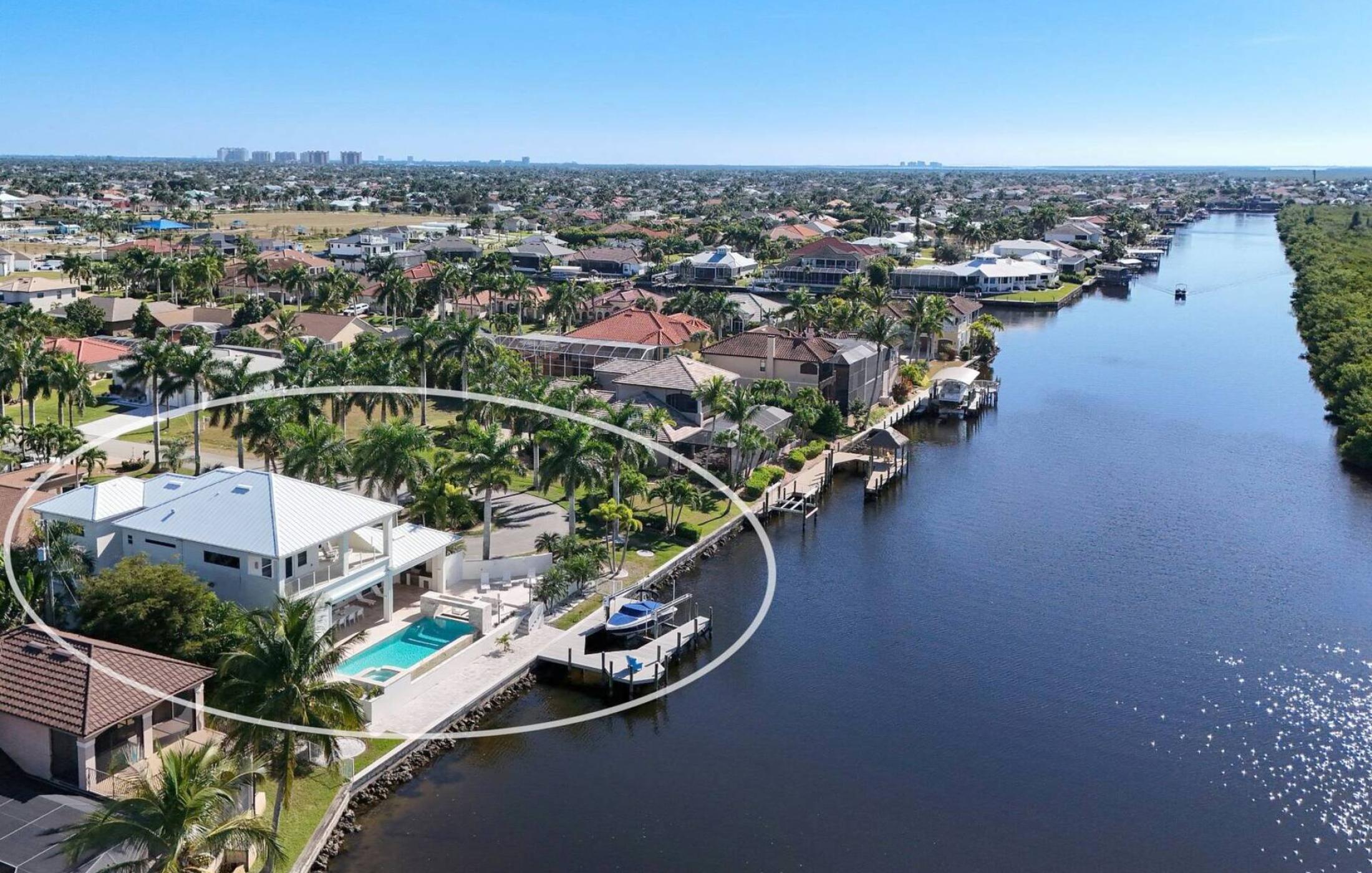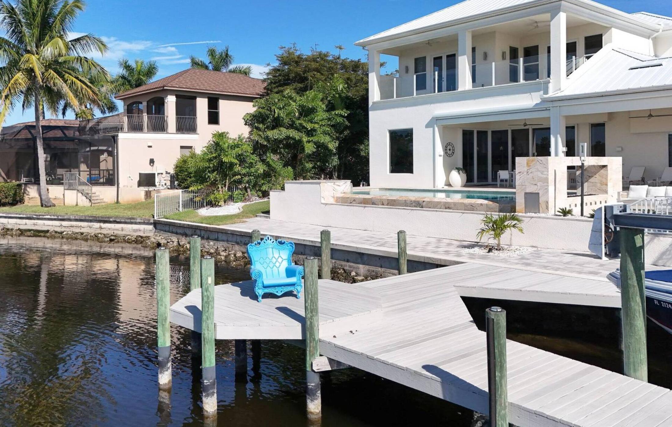 Villa White Crystal is located in a beautiful and quiet neighborhood in the popular southwest of Cape Coral. It is located in one of the most desired and most expensive areas of Cape Coral - directly on the Spreader Canal. You can take nice walks or relaxing bike rides in the neighborhood. Shops, supermarkets, bars and restaurants are in the immediate vicinity. The elegant Cape Harbor Marina is not far and offers restaurants, bars, delicious ice-cream, live-music, and cute little boutiques. A park with a walking path, tennis and pickle-ball courts, and a playground is walking distance.
