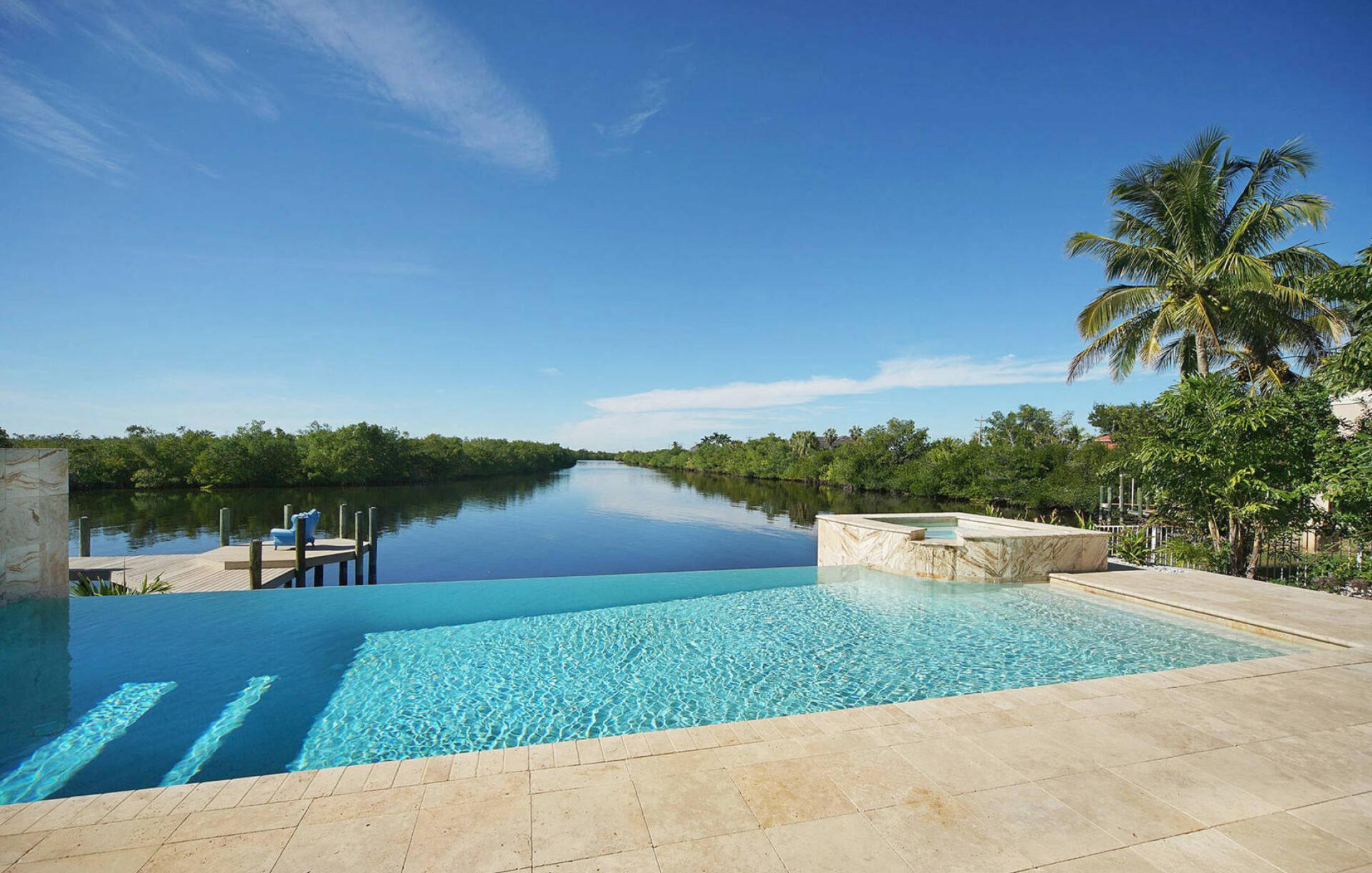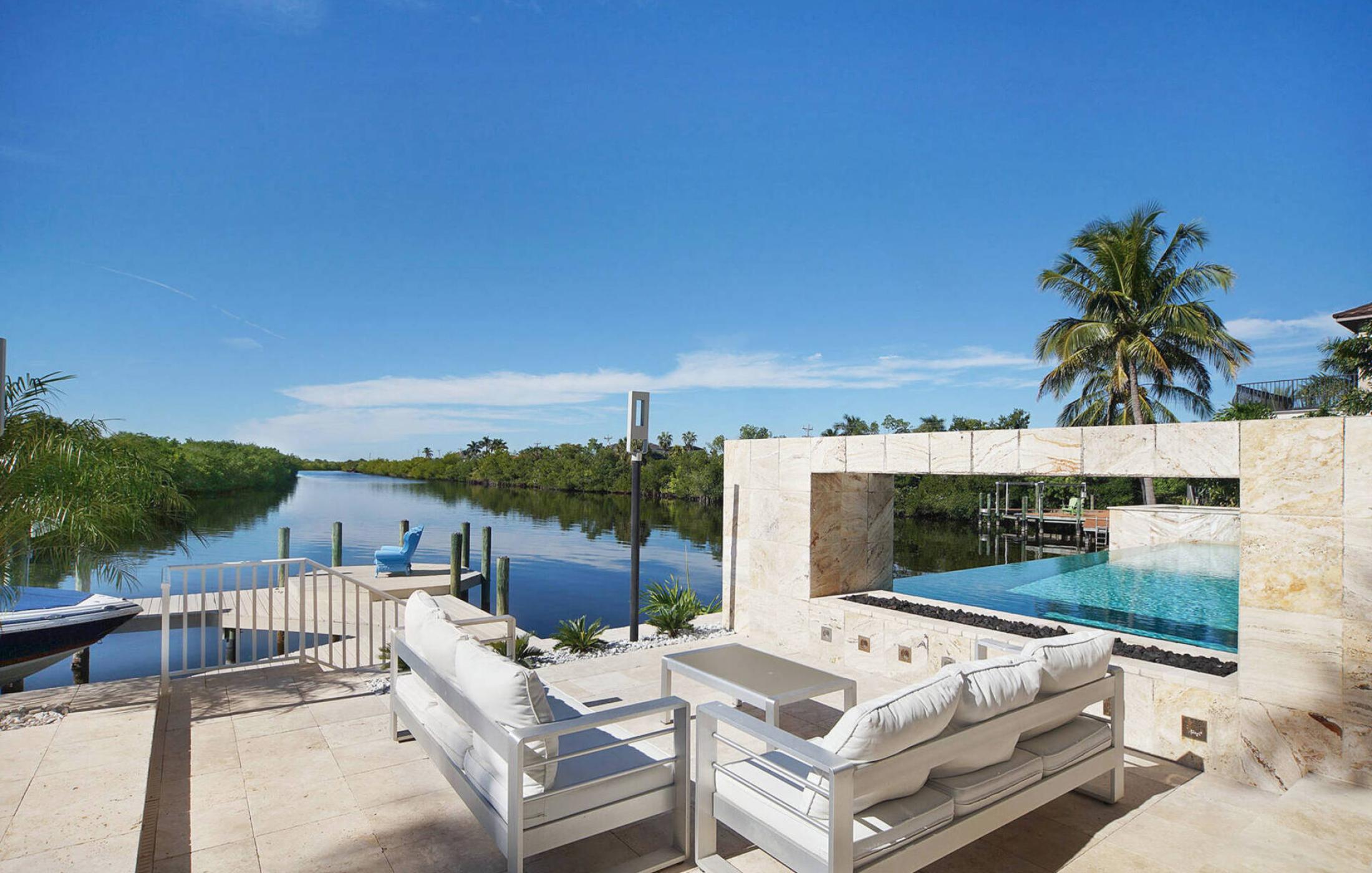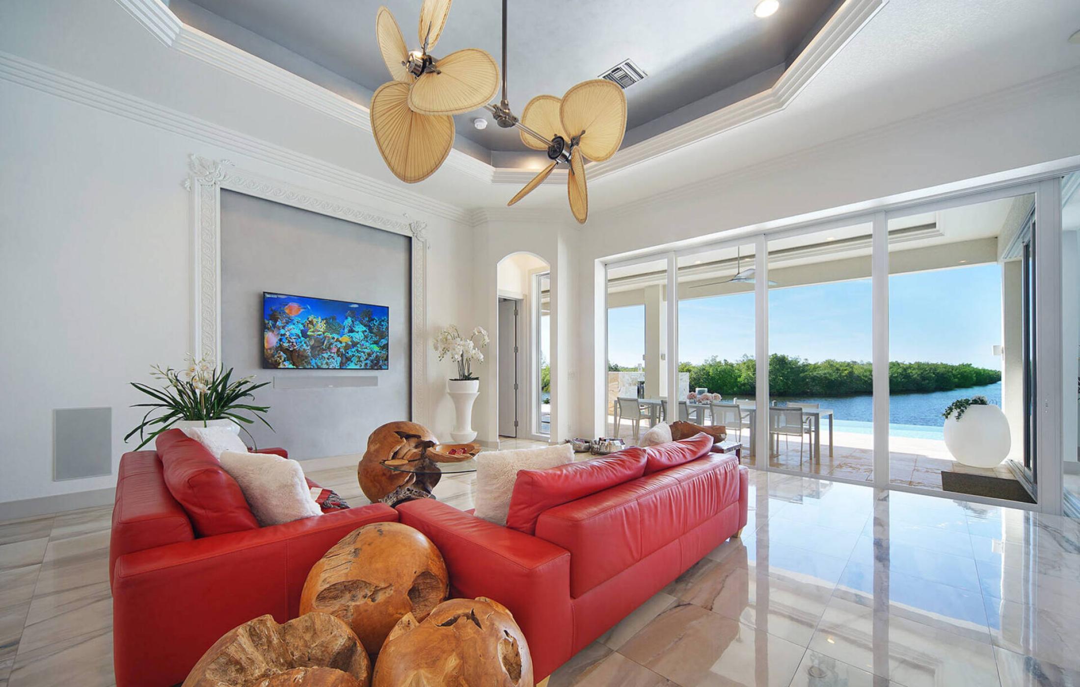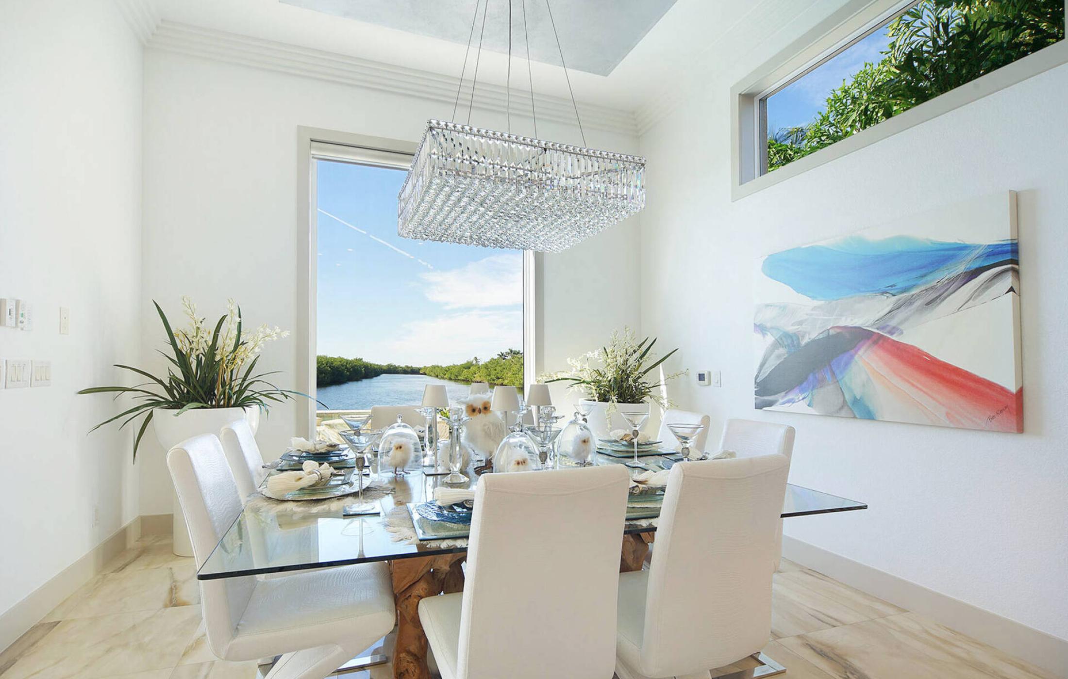 As soon as you enter the elegant and large living room with super high ceilings and a view of the spreader canal and mangroves, you will feel at home. The sliding doors to the patio open fully and seamlessly connect the inside and outside. The view is picture-perfect.