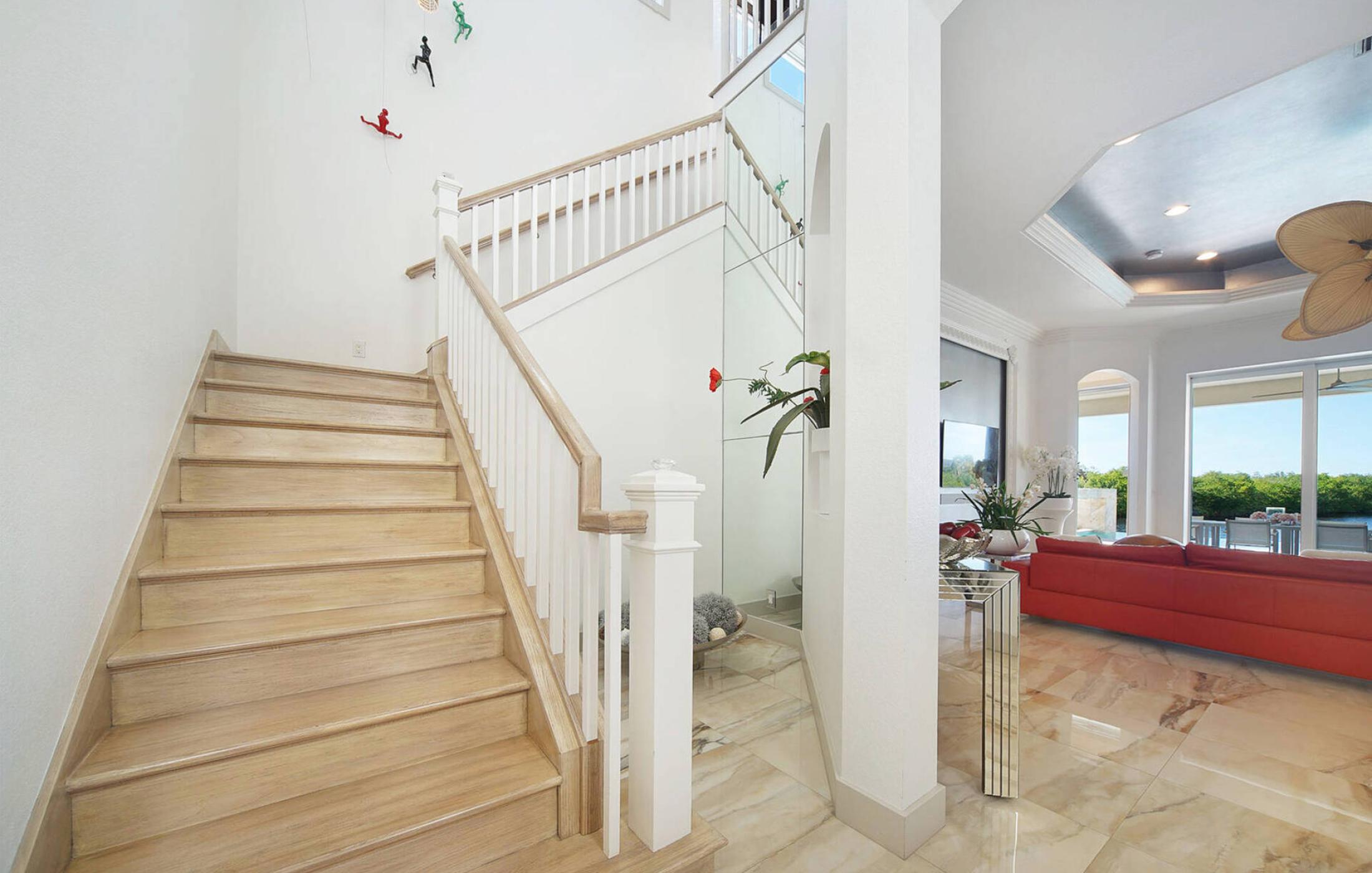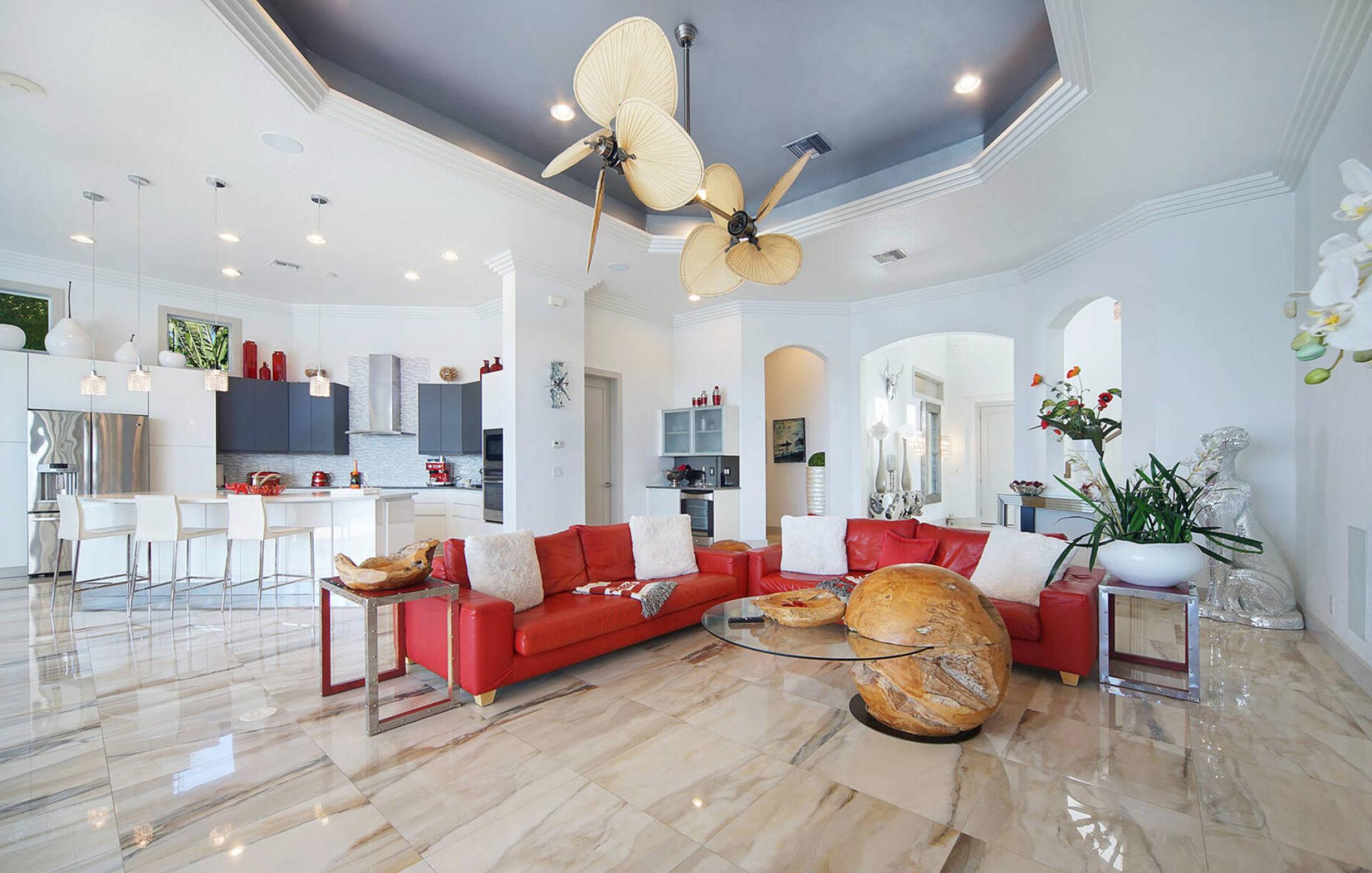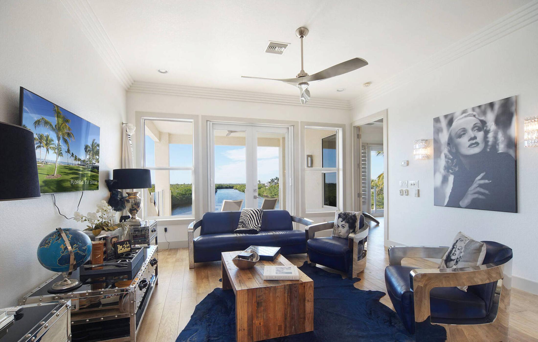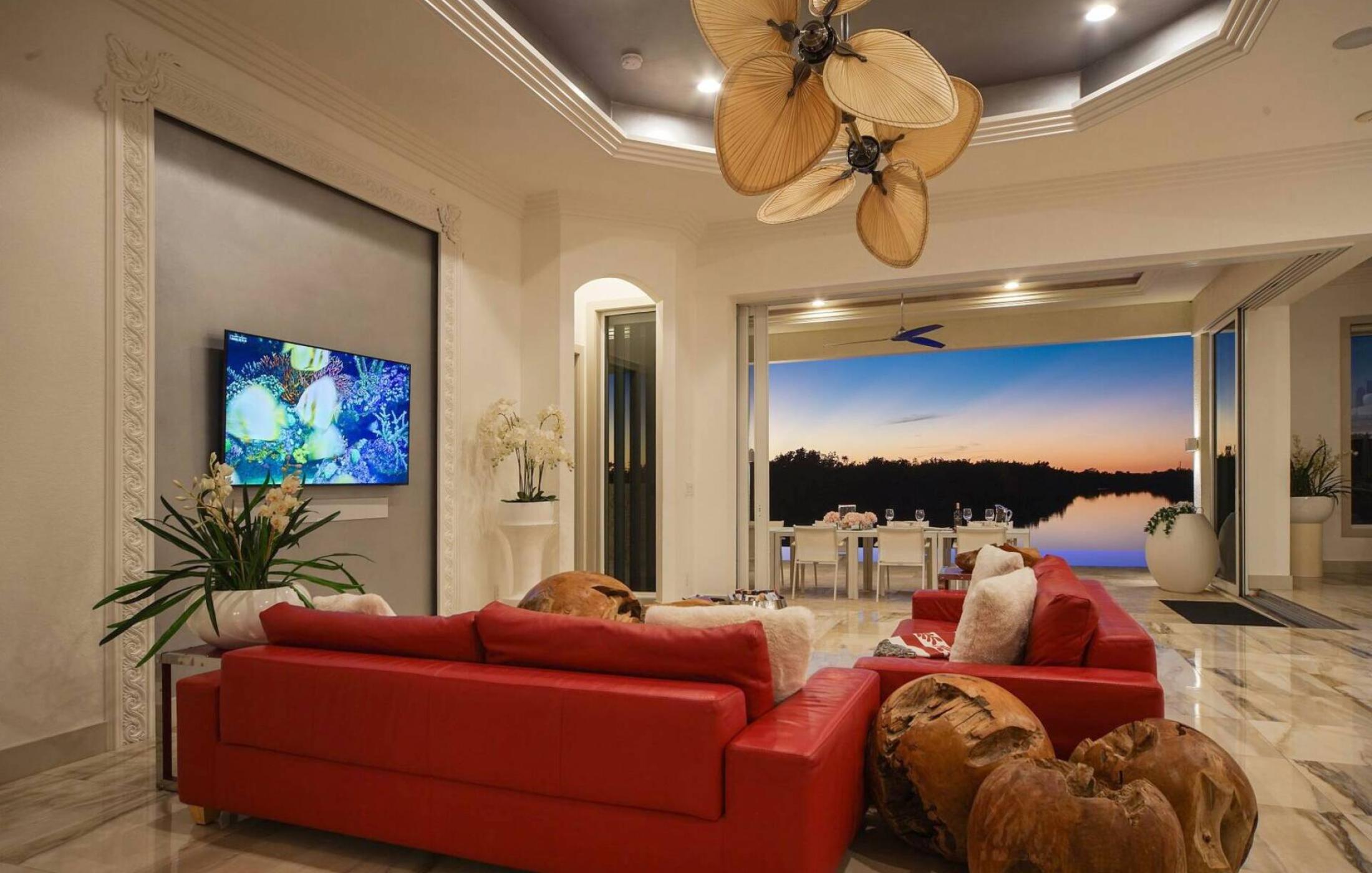 As soon as you enter the elegant and large living room with super high ceilings and a view of the spreader canal and mangroves, you will feel at home. The sliding doors to the patio open fully and seamlessly connect the inside and outside. The view is picture-perfect.