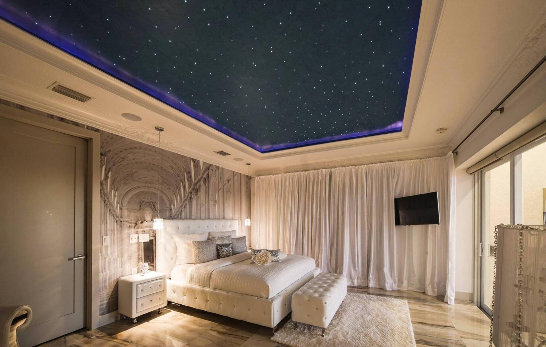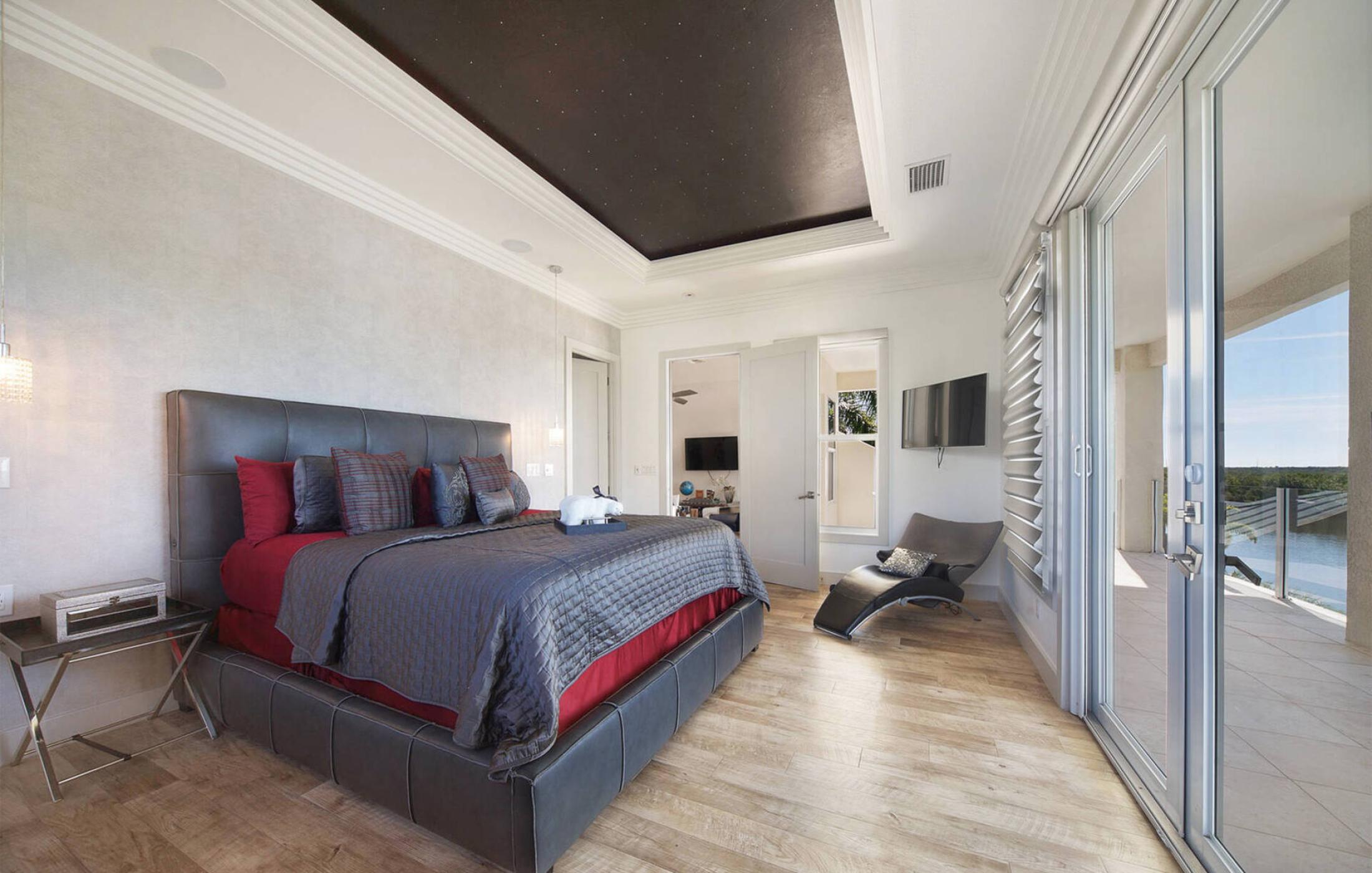 • Master suite 2 with king-size bed (2nd floor). From here, you have direct access to the balcony. This cozy room offers a breathtaking view of the spreader canal and mangroves. Also, the star ceiling allows for even more relaxation.